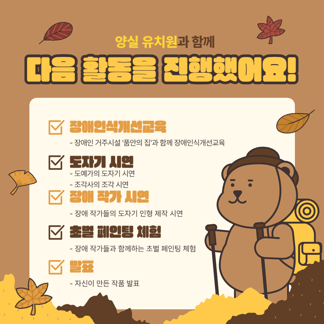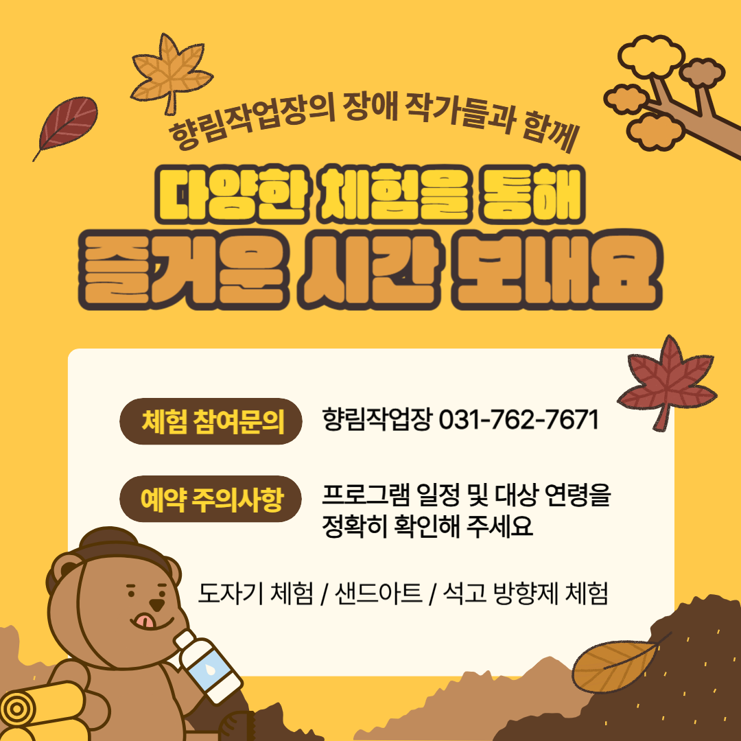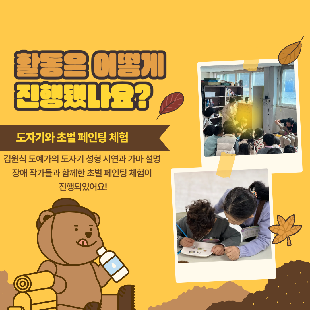 2024³â 11¿ù, »çȸº¹Áö½Ã¼³ Ç⸲¿øÀÇ Á÷¾÷ÀçȰ½Ã¼³ÀÎ Ç⸲ÀÛ¾÷Àå¿¡¼ 'Àå¾Ö ÀÛ°¡¿Í ÇÔ²²ÇÏ´Â Ãʹú ÆäÀÎÆÃ Ã¼Çè'ÀÌ ¾ç½Ç À¯Ä¡¿ø°ú ÇÔ²² ÁøÇàµÇ¾ú½À´Ï´Ù.